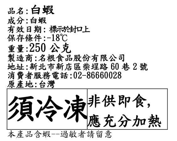 新鮮白蝦,急速冷凍後盒裝,不用擔心衛生問題!