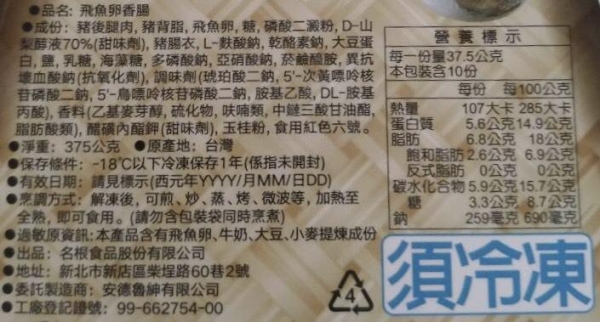 在香腸裡面加上飛魚卵,特殊的組合強碰出無比的口感,每咬一口都有嗶啵嗶啵的感覺,適合愛嘗鮮的朋友!