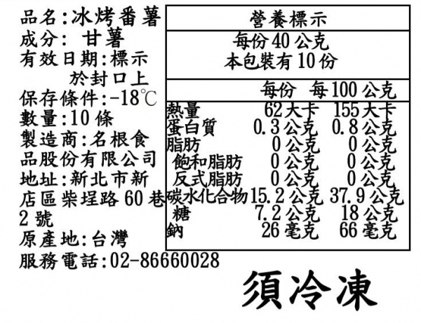 冰烤地瓜(10條)