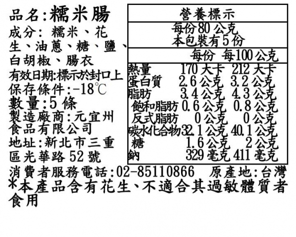 口感紮實綿密的糯米腸,烤熟後單吃就很好吃,也可搭配香腸成大腸包小腸。