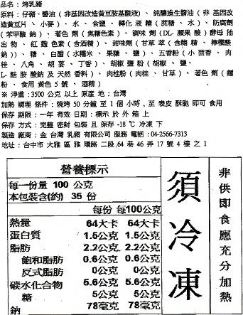 烤乳豬,其選用的豬隻,一定是從出生後開始算約30天以內的豬隻,因為沒有吃過飼料,所以叫烤乳豬。烤出來的肉質較嫩,且脂肪含量也較少,皮較脆,實話說,真的蠻好吃的。